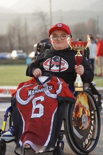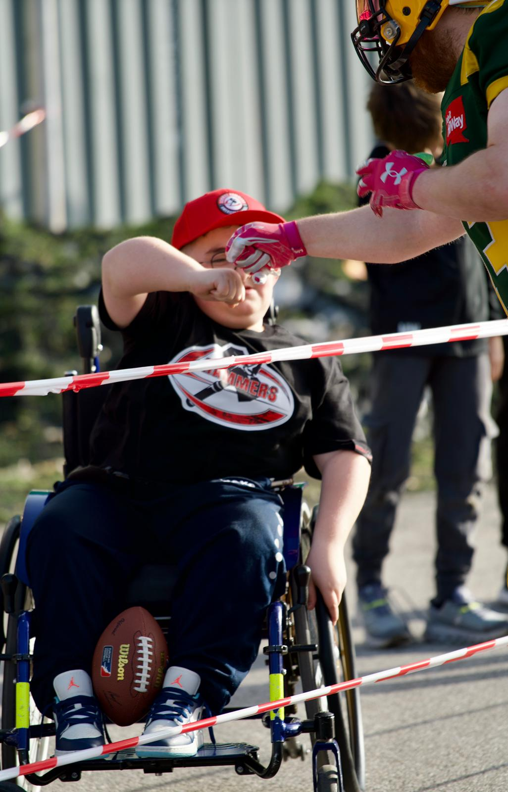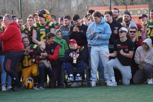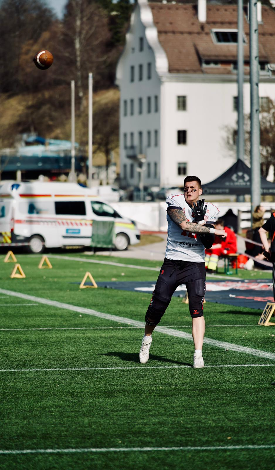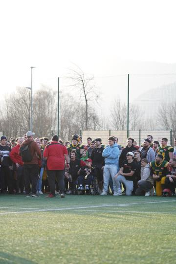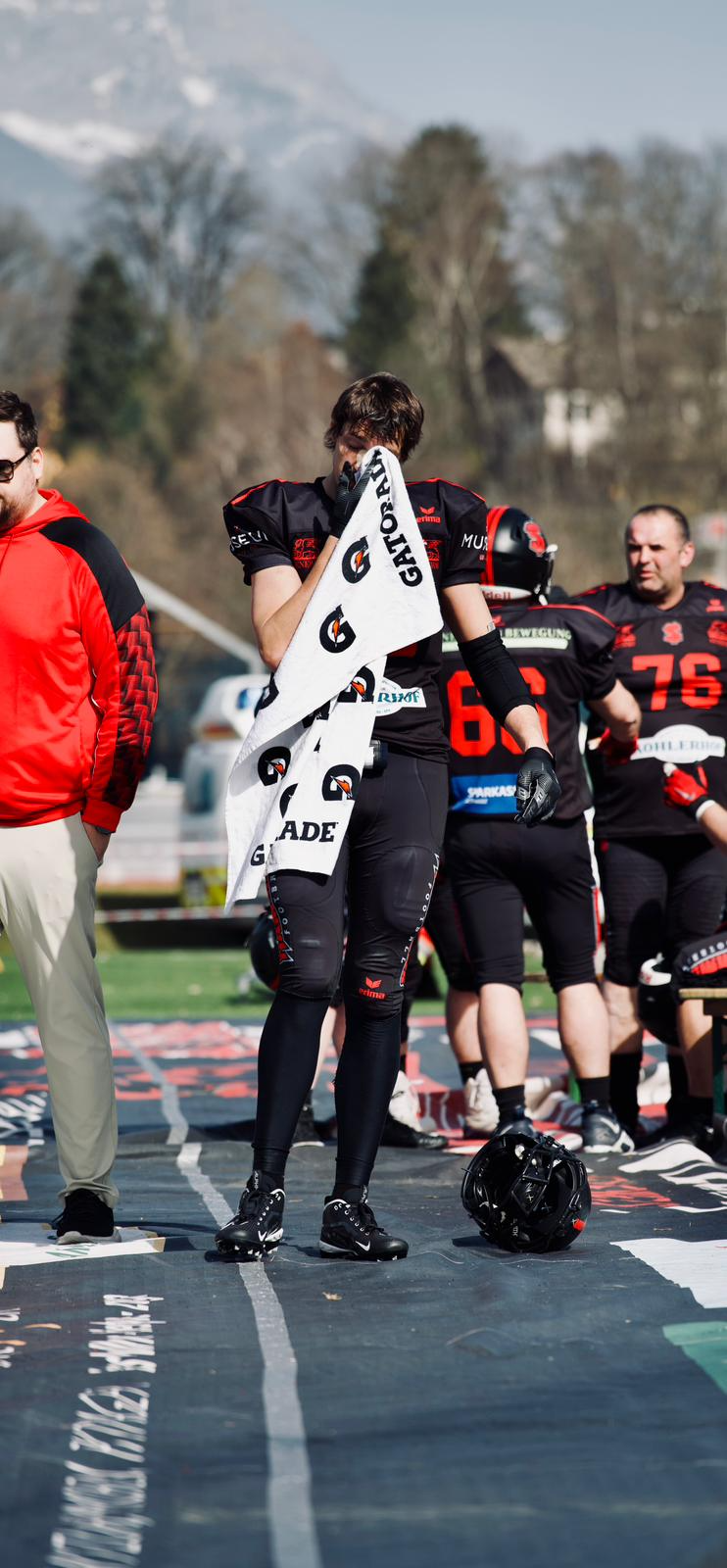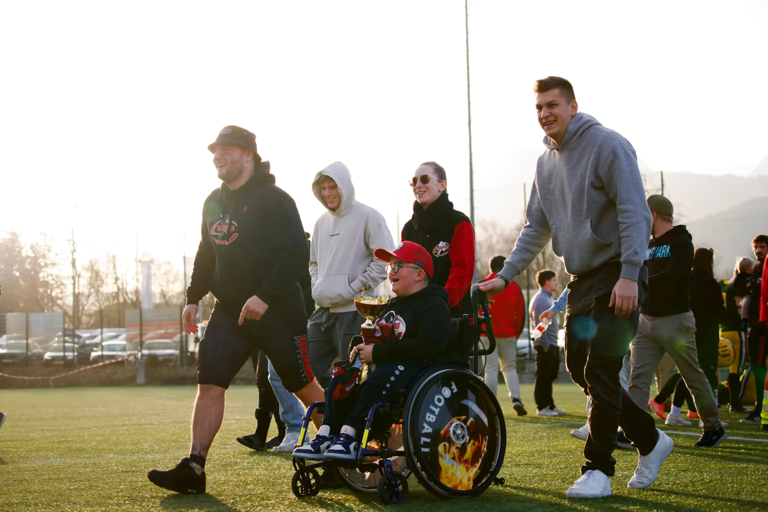 Der Charity Bowl wurde zugunsten von Marco organisiert – einem großen Football-Fan und Sohn eines Spielers der Schwaz Hammers. Trotz gesundheitlicher Herausforderungen ist Marco bei Spielen regelmäßig an der Sideline zu finden und unterstützt das Team mit voller Leidenschaft.