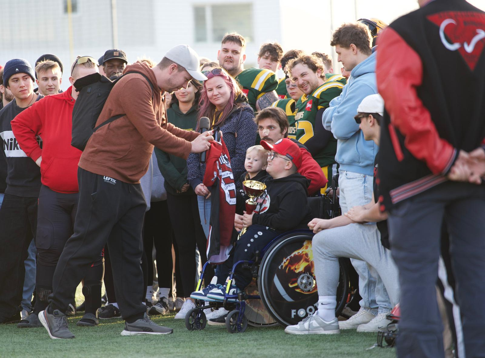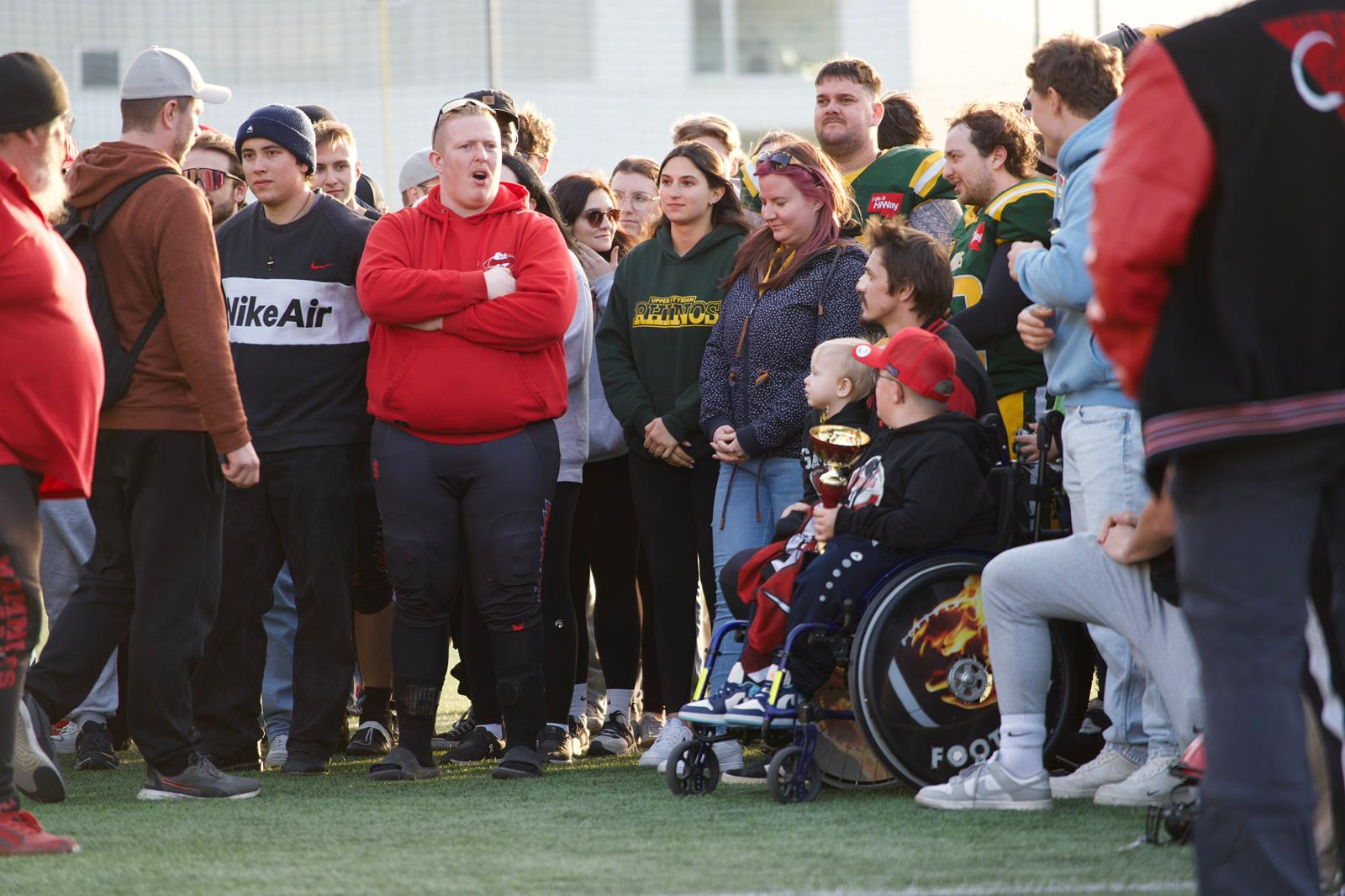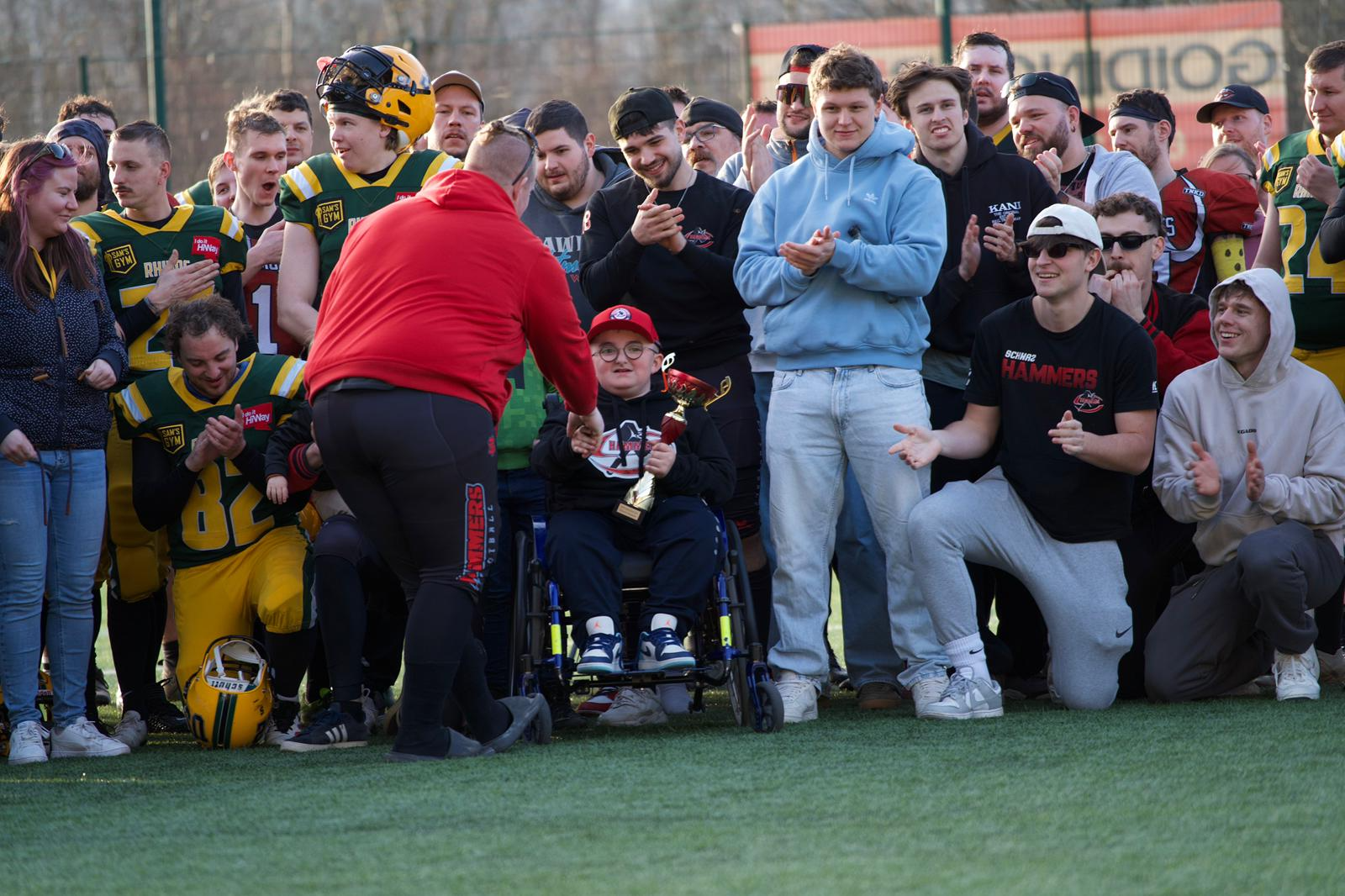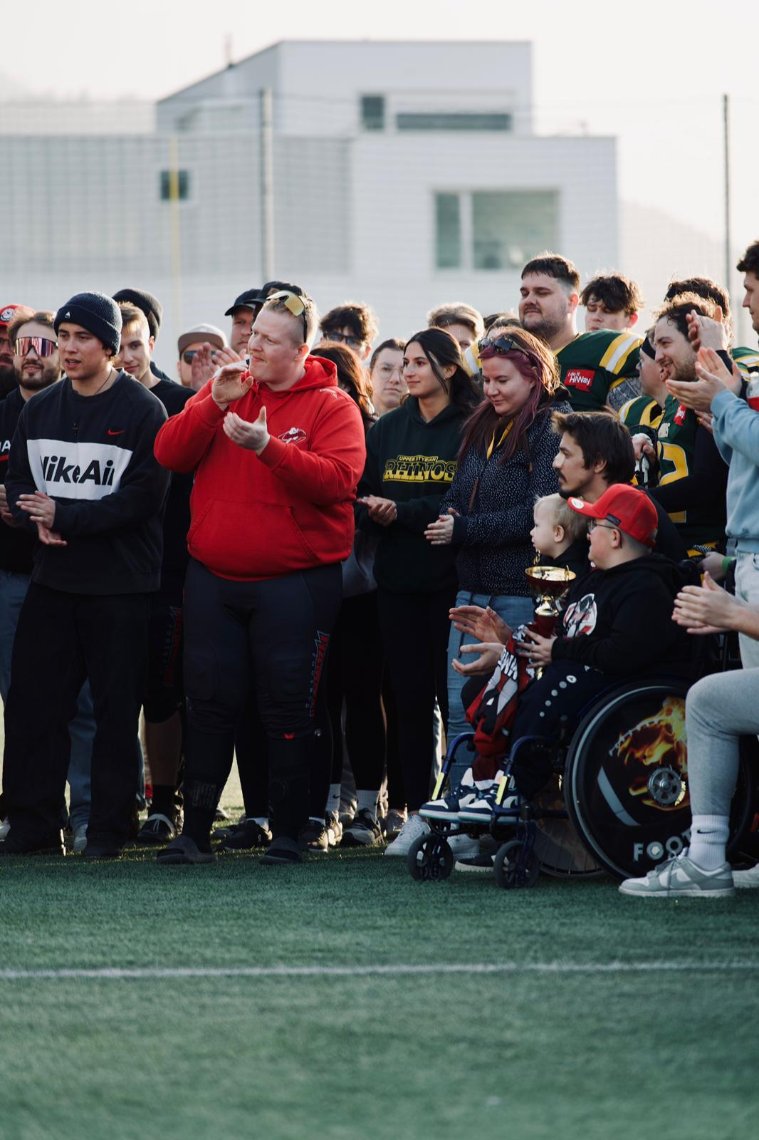 Marco wurde unter großem Applaus zum MVP des Charity Bowls gekürt und erhielt den MVP-Pokal. Ein Moment, der bei vielen Besucher:innen, Spieler:innen und Helfer:innen für Gänsehaut sorgte und einmal mehr zeigte, worum es bei diesem Event wirklich ging – Zusammenhalt und Unterstützung.